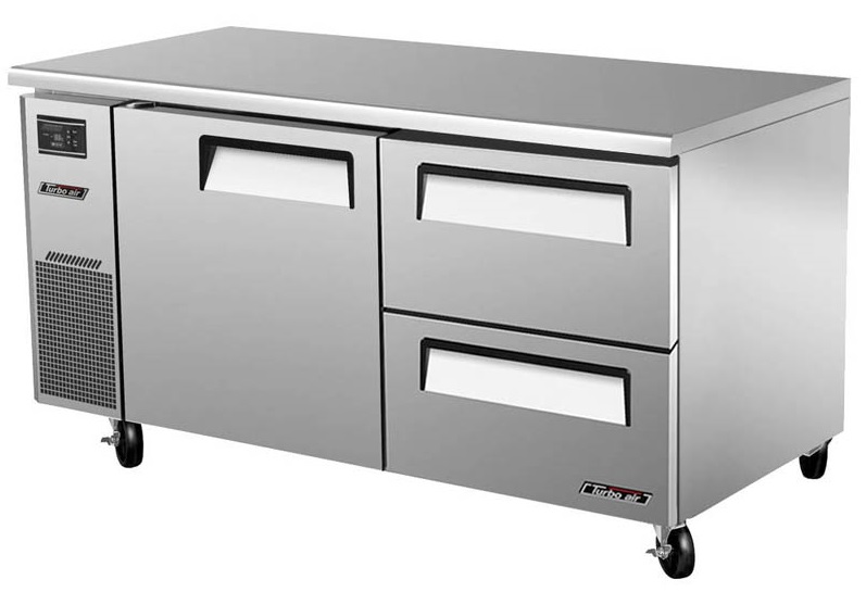 ​Стол морозильный Turbo Air KUF15-2D-2-700 состоит из рабочей поверхности, на которой можно раскатывать тесто и обрабатывать ингредиенты для приготовления блюд, и камеры, предназначенной для заморозки и хранения продуктов и полуфабрикатов на предприятиях пищевой промышленности, общественного питания и торговли.