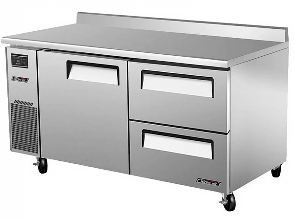 Стол морозильный Turbo Air KWF15-2D-2-600 состоит из рабочей поверхности, на которой можно раскатывать тесто и обрабатывать ингредиенты для приготовления блюд, и камеры, предназначенной для заморозки и хранения продуктов и полуфабрикатов на предприятиях пищевой промышленности, общественного питания и торговли.