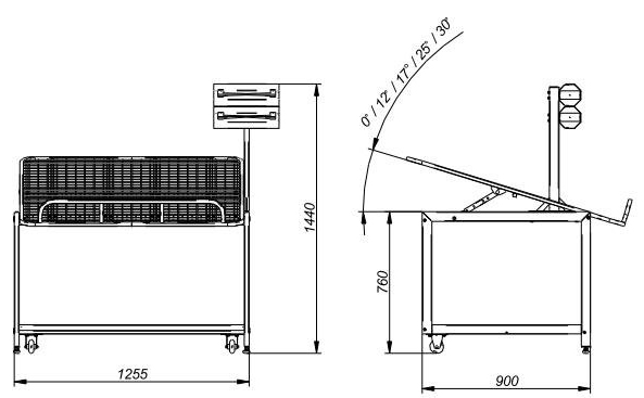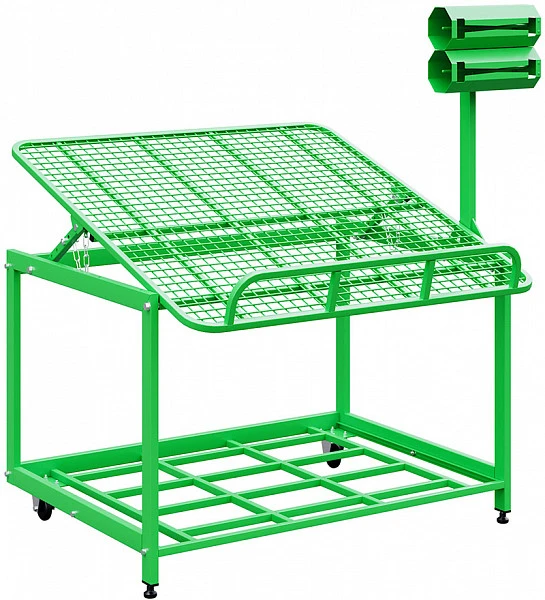 • Стол для овощей снабжен регулируемой столешницей с сеткой, исключающей падение товара.