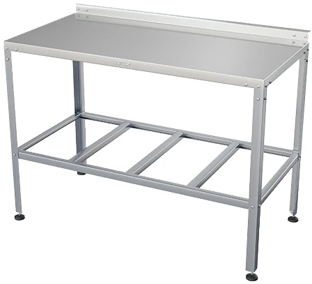 Все кромки столешницы и элементов каркаса имеют подгиб (фальцовку), что полностью исключает получение травмы персоналом при сборке, эксплуатации и санитарной обработке стола.