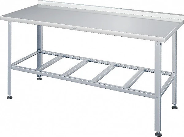 Наличие борта позволяет располагать стол вдоль стены, исключая попадание остатков обрабатываемой продукции на пол, что значительно упрощает уборку помещения