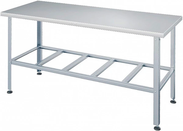 Все кромки столешницы и элементов каркаса имеют подгиб (фальцовку), что полностью исключает получение травмы персоналом при сборке, эксплуатации и санитарной обработке стола.