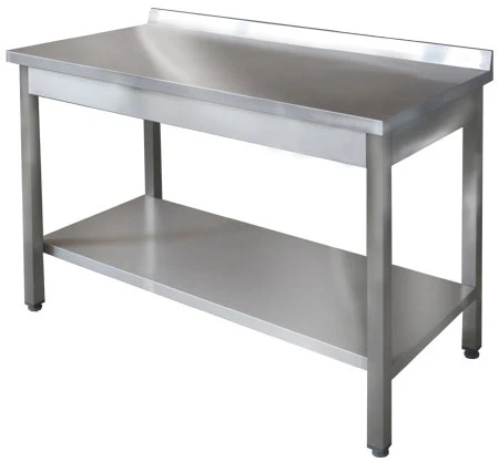 Стол пристенный с полкой изготовлен из нержавеющей стали.