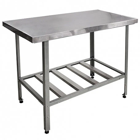 Столы оснащаются полками-решетками или опционально сплошными полками из оцинкованной или нержавеющей стали, которые устанавливаются поверх полки-решетки.