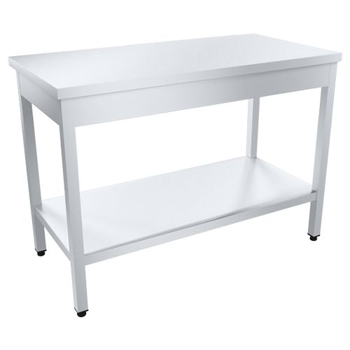 Столешница выполнена из нержавеющей стали марки AISI 430, толщиной 0,8 мм и дополнительно усиливается ЛДСП (ламинированным листом древесно-стружечной плиты) толщиной не менее 16 мм.