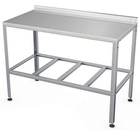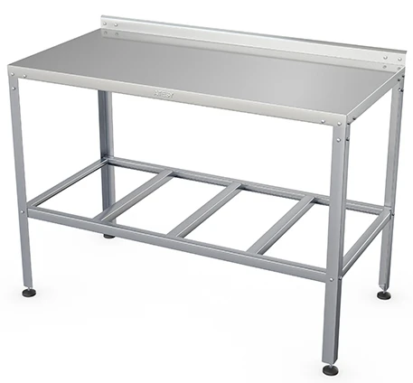 Наличие борта позволяет располагать стол вдоль стены, исключая попадание остатков обрабатываемой продукции на пол, что значительно упрощает уборку помещения