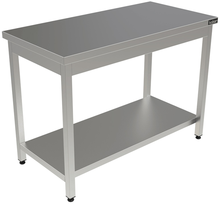 Столешница стола изготовлена из нержавеющей стали aisi 430 и усилена с внутренней стороны листом ламинированной древесно-стружечной плитой толщиной 16 мм, что увеличивает прочность и исключает прогиб столешницы.