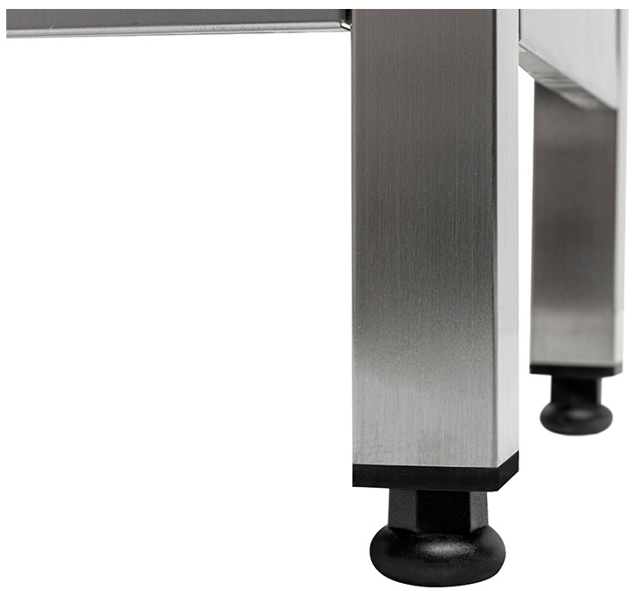 Столешница стола изготовлена из нержавеющей стали aisi 430 и усилена с внутренней стороны листом ламинированной древесно-стружечной плитой толщиной 16 мм, что увеличивает прочность и исключает прогиб столешницы.