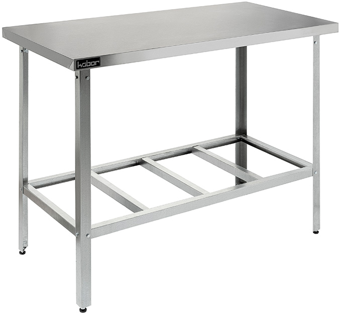 Стол разделочный КОБОР СР-95/70/430 без борта - широко применяется в различных производственных цехах предприятий общественного питания, супермаркетах, комбинатах пищевой промышленности для разделывания и обработки пищевых продуктов, а также в качестве вспомогательной поверхности для кухонного оборудования.