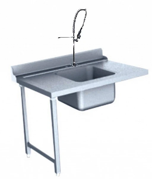 Стол с моечной ванной и с отверстием для установки душа для предварительной очистки посуды от остатков пищи.