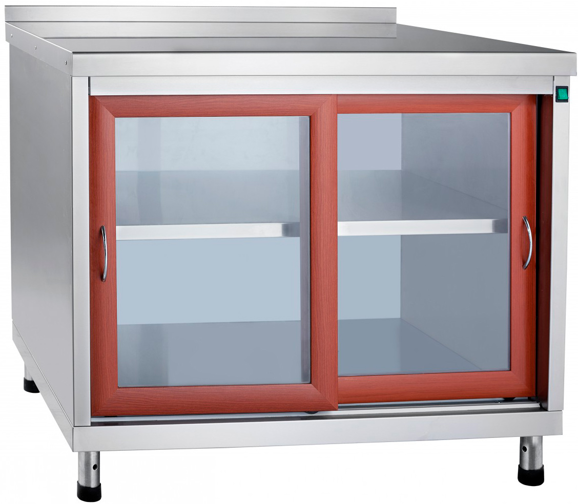 В состав конструкции нейтрального стола входят столешница, две раздвижные дверцы-купе со встроенными прозрачными стеклами, борт, устойчивые ножки-опоры.