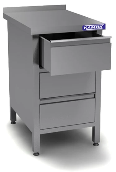 Производственный стол с тремя выдвижными ящиками и бортом