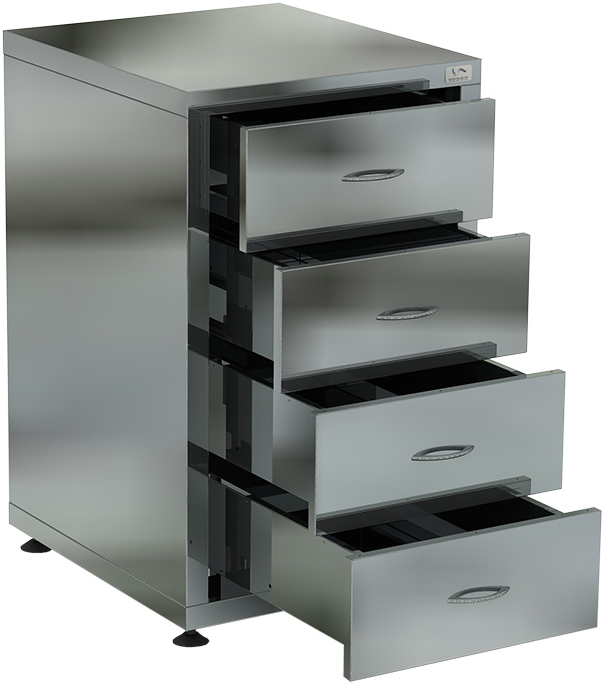 Четыре выдвижных ящика.