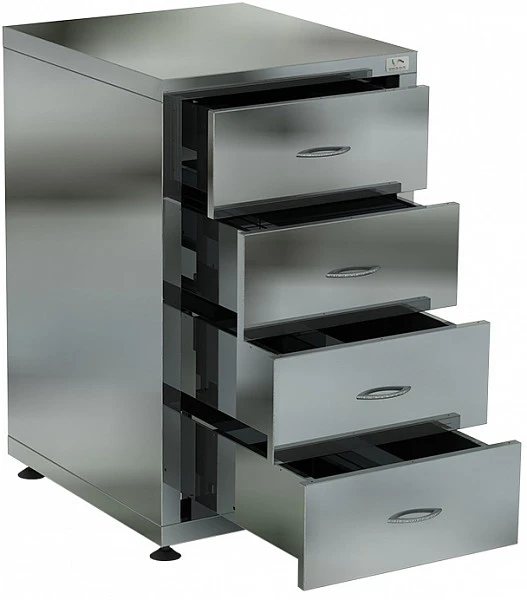 Стол-тумба полностью изготовлена из нержавеющей стали aisi 430, что позволяет их применять в различных цехах.