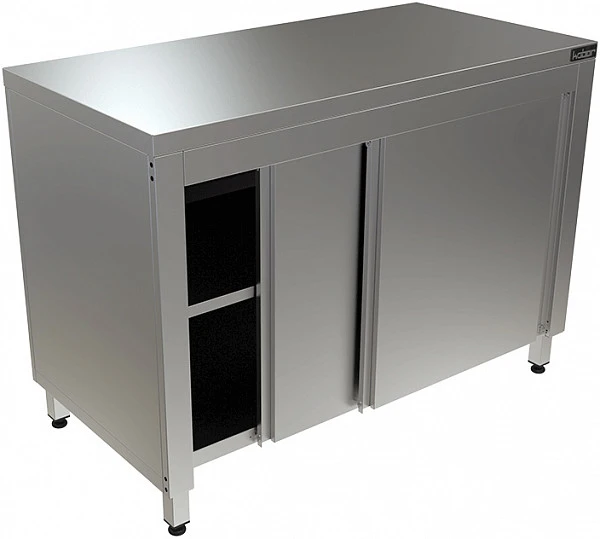 Стол-тумба Кобор СТ-150/70/К используется и как обычный разделочный стол, а благодаря наличию закрытого объема, их можно использовать для хранения посуды, инвентаря, столовых приборов прочего.