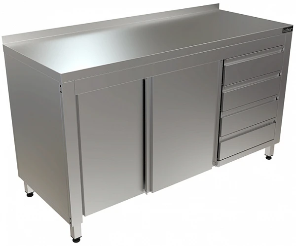 Стол-тумба полностью изготовлена из нержавеющей стали aisi 430, что позволяет их применять в различных цехах.