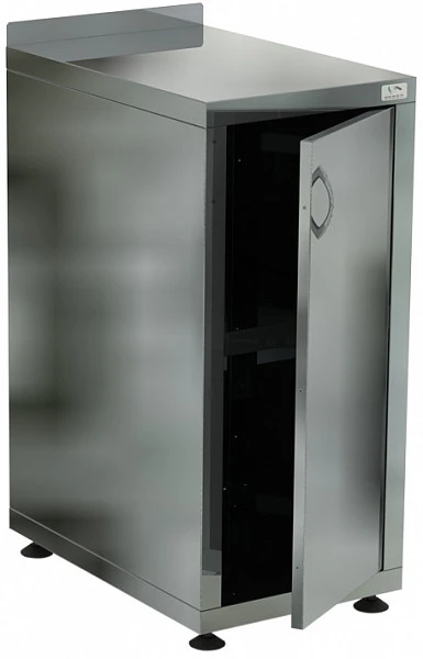 Стол-тумба полностью изготовлена из нержавеющей стали aisi 430, что позволяет их применять в различных цехах.