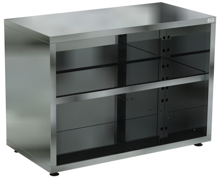 Стол-тумба полностью изготовлена из нержавеющей стали aisi 430, что позволяет их применять в различных цехах.