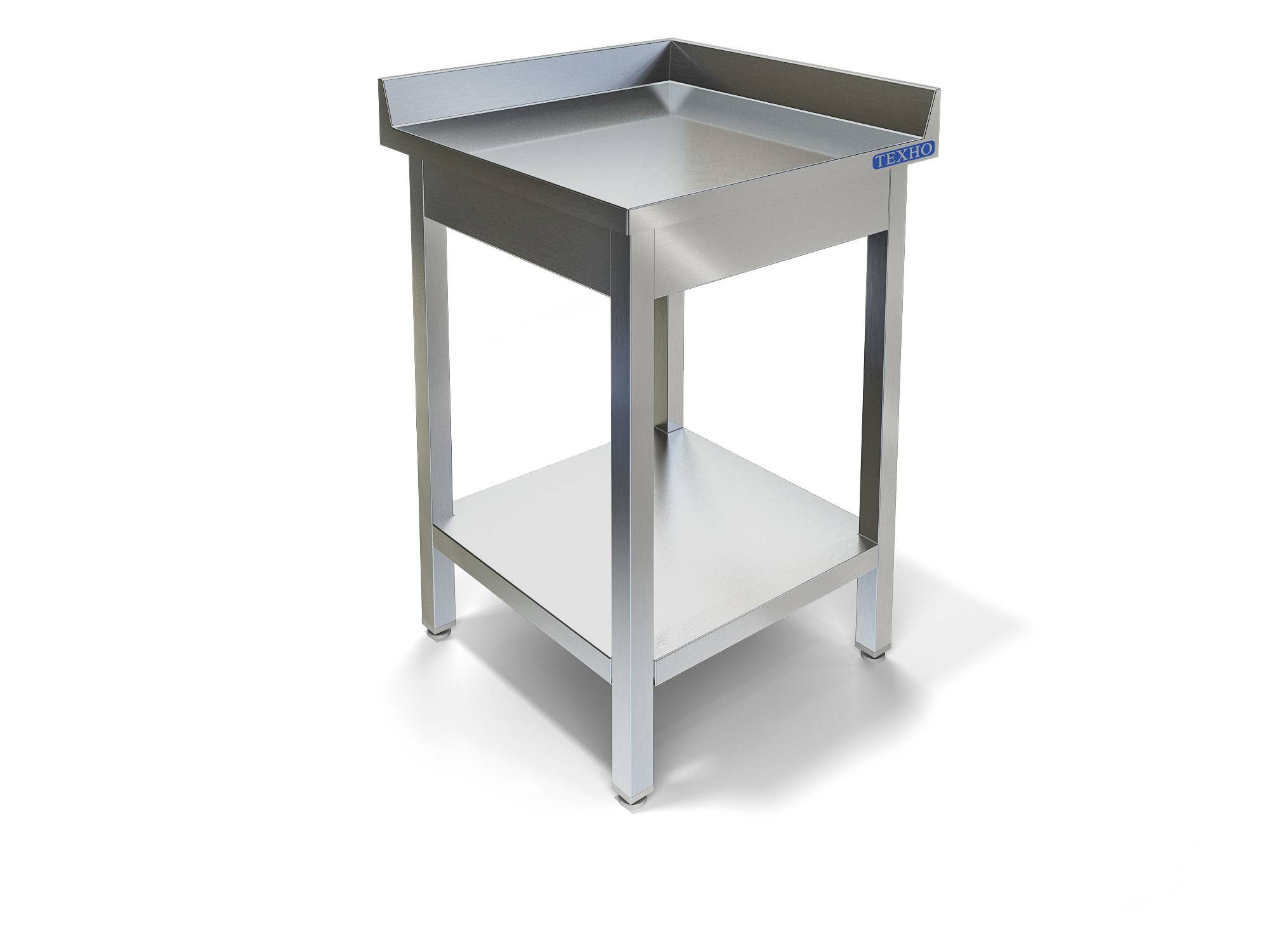 Столешница стола имеет два борта, что дает возможность устанавливать его в угол помещения и тем самым рационально использовать производственные площади. Ножки стола снабжены регуляторами высоты, что позволяет устранять неровности пола. Универсальная конструкция позволяет легко производить сборку стола. Изделие легко моется.