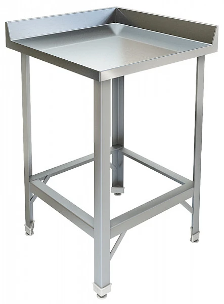Столешница стола имеет два борта, что дает возможность устанавливать его в угол помещения и тем самым рационально использовать производственные площади. Ножки стола снабжены регуляторами высоты, что позволяет устранять неровности пола. Универсальная конструкция позволяет легко производить сборку стола. Изделие легко моется.