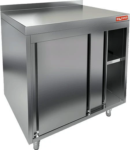 Стол закрытый купе Hicold НБМСЗК-9/2,5Б КУПЕ используется для разделывания и обработки пищевых продуктов, а также в качестве вспомогательной поверхности для кухонного оборудования в различных производственных цехах предприятий общественного питания, супермаркетах, комбинатах пищевой промышленности и пр.