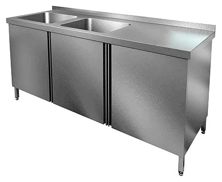 Стол закрытый с мойкой Hicold НСЗ2М-14/6БЛ используется в различных производственных цехах предприятий общественного питания, супермаркетах, комбинатах пищевой промышленности для разделывания и обработки пищевых продуктов, а также в качестве вспомогательной поверхности для кухонного оборудования. А так же для использования в моечных отделениях предприятий общественного питания для мытья, дезинфекции и ополаскивания использованной посуды. Благодаря наличию закрытого объема их также можно использовать для хранения посуды, инвентаря, столовых приборов и сухих видов продуктов.