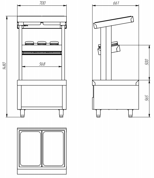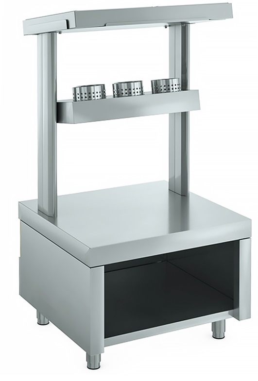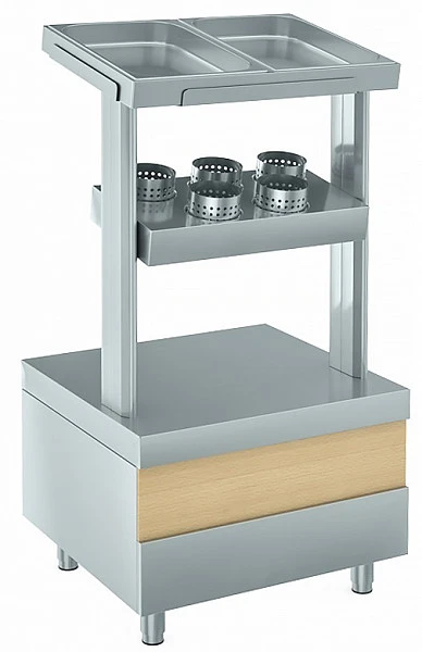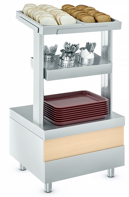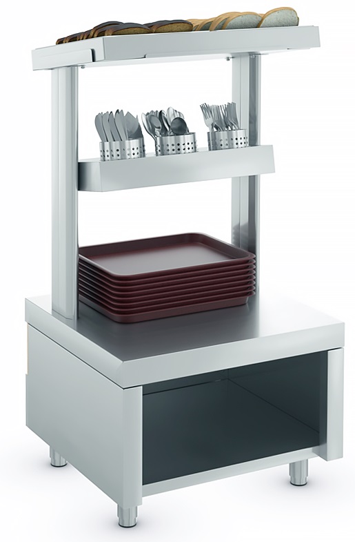 Со стороны обслуживающего персонала стойка имеет нишу для хранения дополнительного запаса подносов.