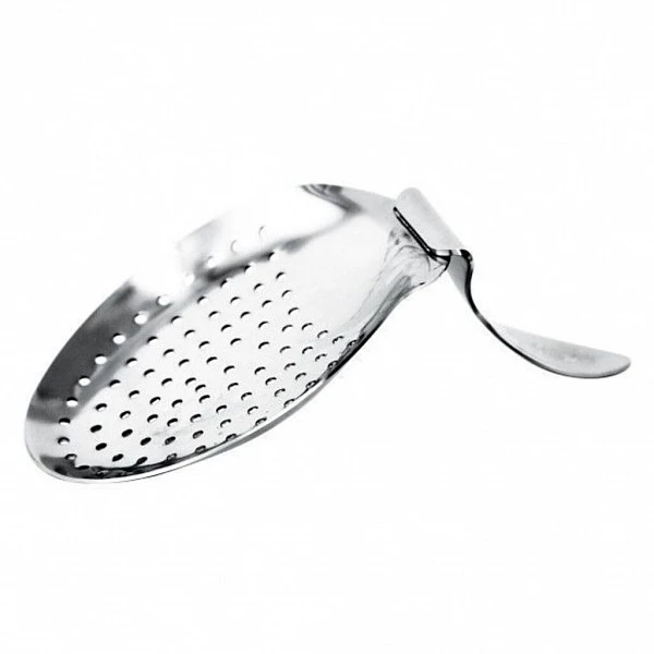 Стрейнер барный The Bars Джулеп нерж. изогнутая ручка - профессиональный инструмент бармена, предназначенный для отсеивания крупных частиц, таких как лёд или кусочки фруктов, при переливании коктейля из шейкера в бокал.