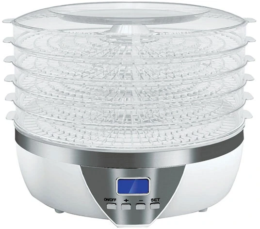Она укомплектована пятью вместительными поддонами из прозрачного пластика, позволяющими одновременно сушить большое количество продукта.