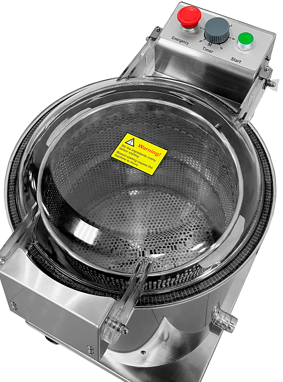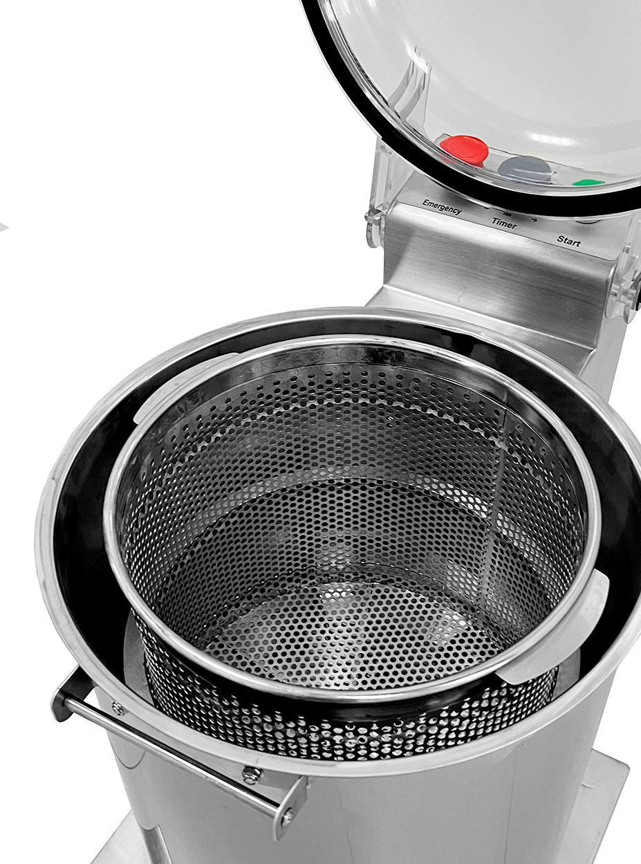 Лишняя вода выходит через трубку Ø35 мм, расположенную в нижней части центрифуги.