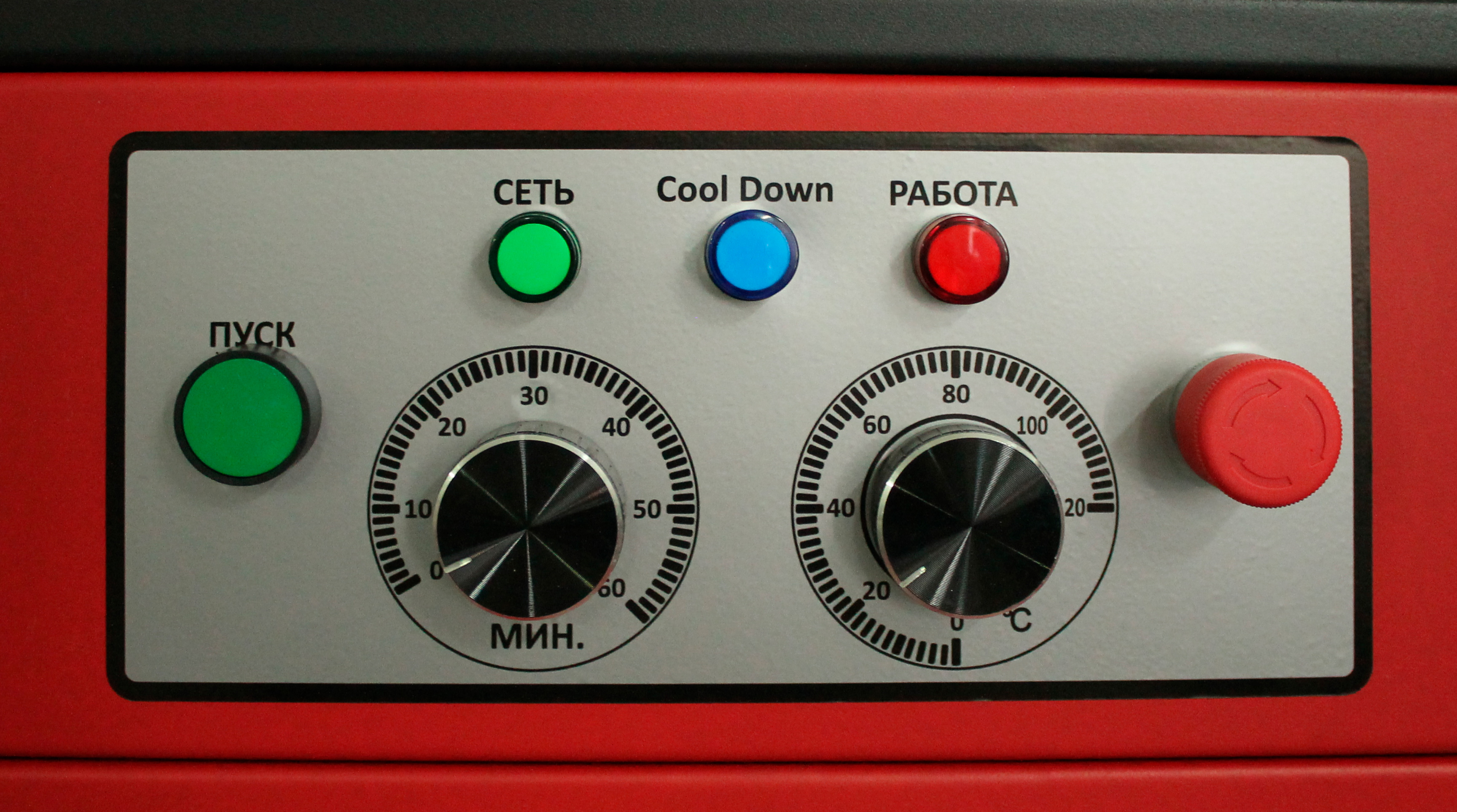 • Управление. Механические ручные таймеры для выставления необходимого времени и температуры работы машины.