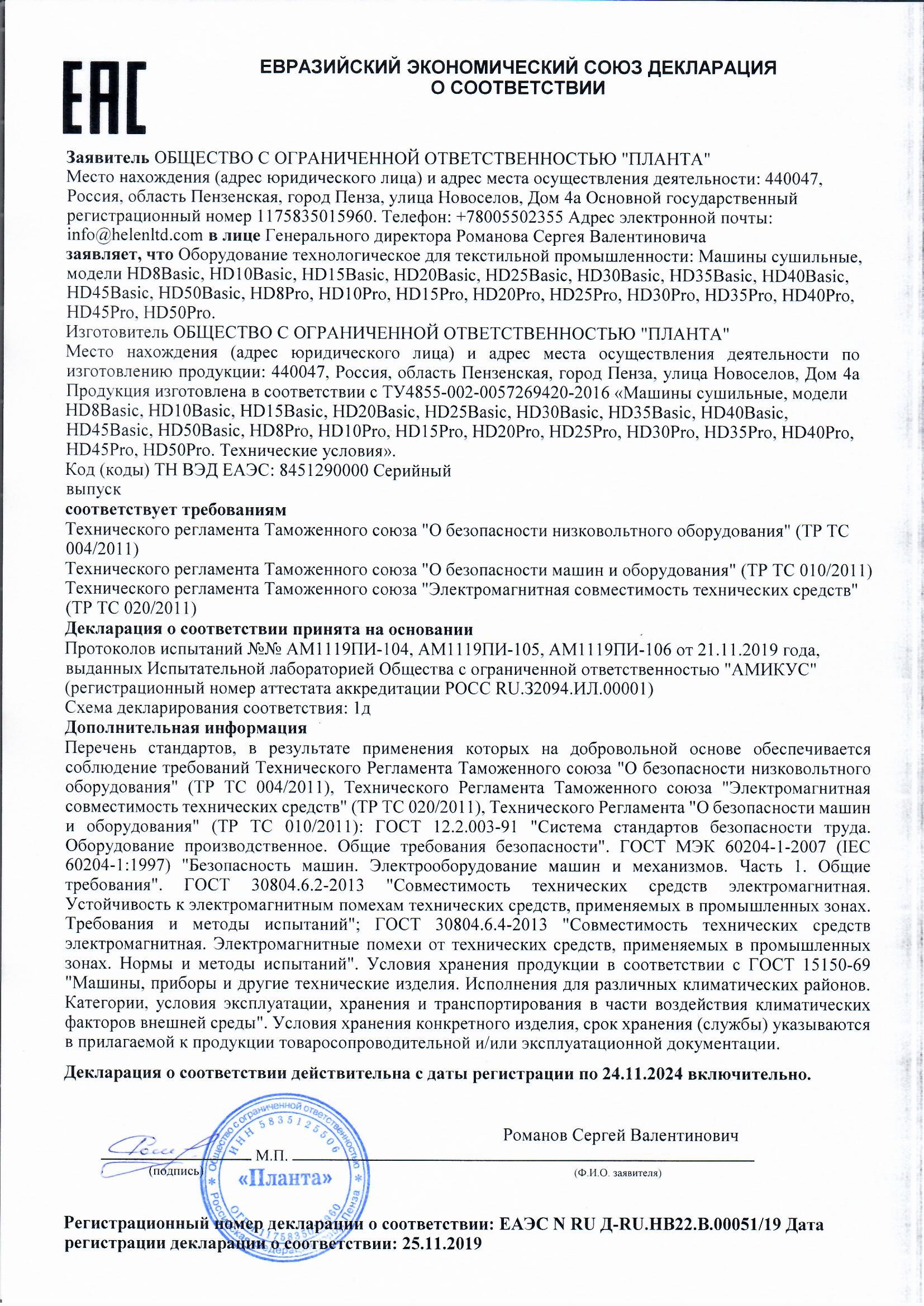 Сушильная машина Helen HD15 Pro отличается простотой использования, надежностью и коротким сроком окупаемости.