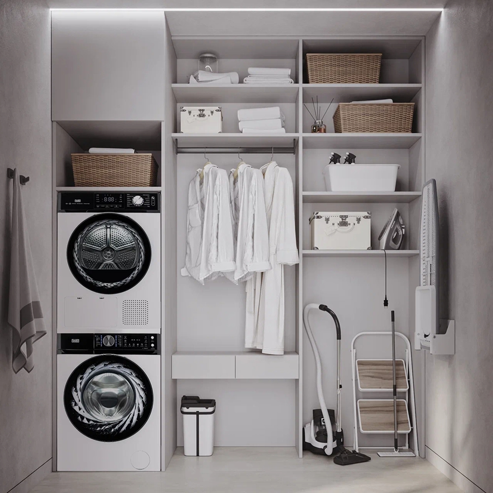 Четырёхступенчатый фильтр собирает пыль, ворсинки и остатки ниток из белья и одежды. Первый этап — фильтр высокой плотности для сбора волос и ниток, второй этап — внешний фильтр, третий этап — внутренний фильтр, четвёртый этап — поглотитель пыли до 0,5 микрона. Таким образом, он очищает одежду от пыли и ворса, предотвращая их распространение по дому.