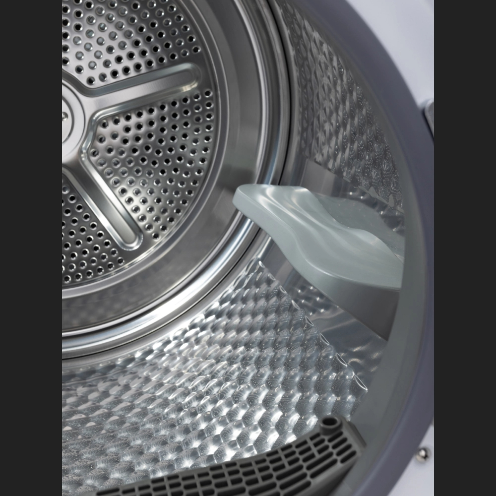 Heat Pump — энергоэффективная технология сушки с использованием теплового насоса. В ходе цикла нагретый воздух при помощи вентилятора попадает в барабан и деликатно сушит вещи.