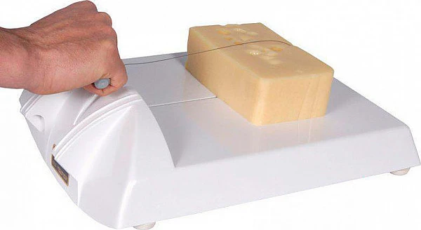 Благодаря конструкции сырорезки со сменным ножом-струной срезы получаются ровными – достаточно прижать сыр струной, положив его на поверхность данного устройства.