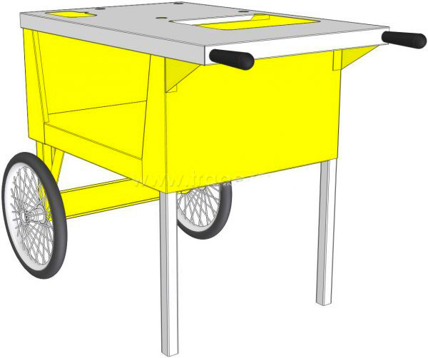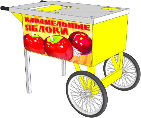 Тележка используется для установки аппарата Карамелита-М и гастроемкостей, а также для продажи яблок на улицах.