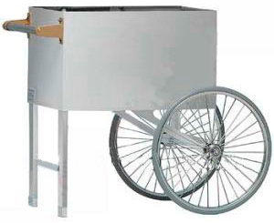 Тележка двухколесная для попкорн аппаратов изготовлена из нержавеющей стали.