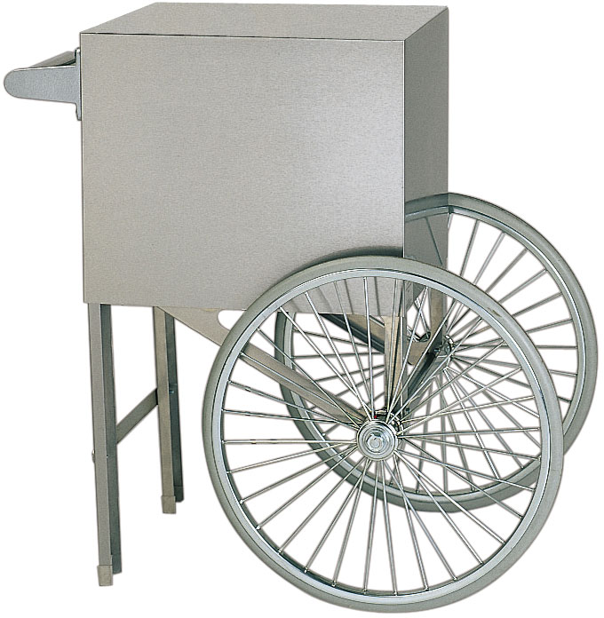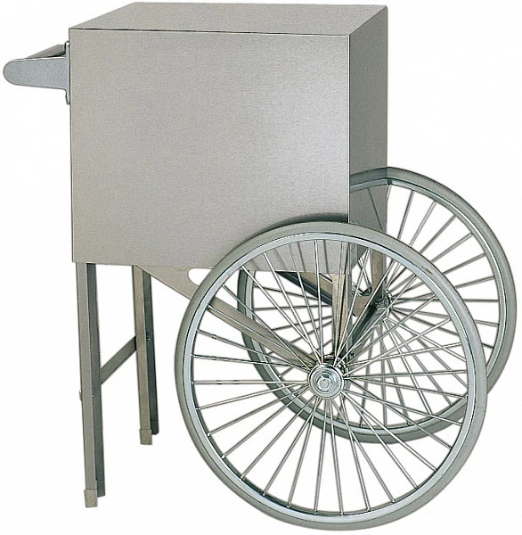 Изготовлена из нержавеющей стали и имеет 2 серебристых колеса, 2 серебристые стойки, 1 ручку для перемещения, 2 дверцы со стороны оператора.