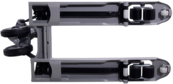 - Специальная клиновидная форма вил и дополнительный въездной подвилочный ролик позволяют беспрепятственно и с максимальной легкостью осуществлять ввод и вывод тележки под паллет и преодолевать различного рода препятствия при работе с грузом.