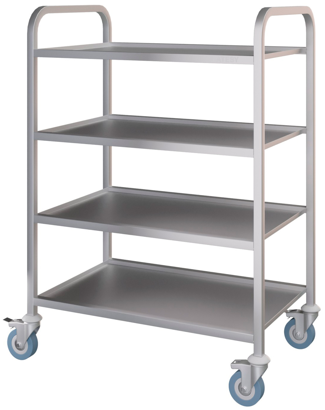Тележка сервировочная Atesy ТС-Л-4-1100.600.1100-02 предназначена для перемещения в зал приема пищи готовых блюд, напитков и посуды, а также для подачи грязной посуды из зала в моечное отделение на предприятиях общественного питания и торговли.