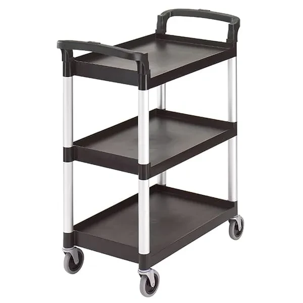 Тележка сервировочная Cambro BC331KD110 используется для транспортировки столовых приборов, тарелок с готовыми блюдами, грязной посуды и т.д. на предприятиях общественного питания.