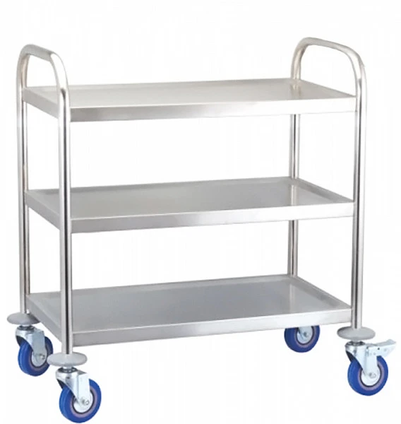 Тележка сервировочная CuisinAid CD-RST3B предназначена для перемещения на предприятиях общественного питания по залу продуктов, готовых блюд, напитков и посуды, а также для подачи грязной посуды из зала в моечное отделение.
