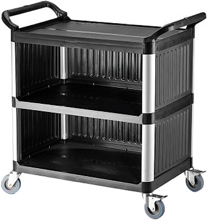 Тележка сервировочная Empero EMP.PSV.03-К предназначена для перемещения на предприятиях общественного питания по залу продуктов, готовых блюд, напитков и посуды, а также для подачи грязной посуды из зала в моечное отделение.