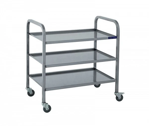 Тележка сервировочная Kayman ТС-13/390-А предназначена для перемещения на предприятиях общественного питания по залу продуктов, готовых блюд, напитков и посуды, а также для подачи грязной посуды из зала в моечное отделение.