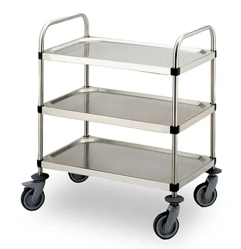 Тележка сервировочная Matfer Bourgeat 778556 используется для транспортировки столовых приборов, тарелок с готовыми блюдами, грязной посуды и т.д. на предприятиях общественного питания.