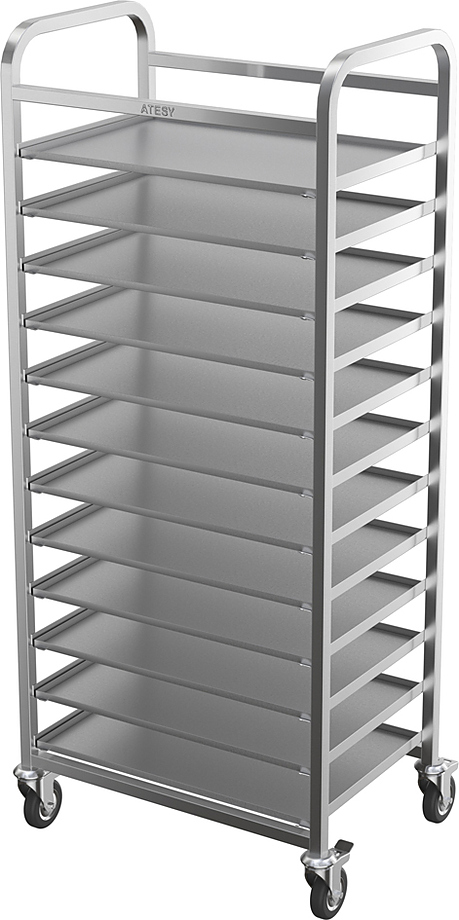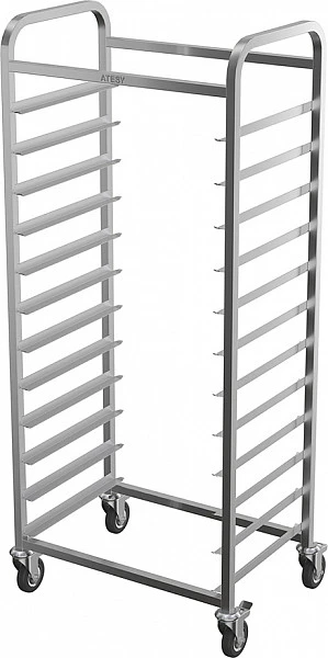 Тележка-шпилька Atesy КШ-Л-1.14-600.400-02 кондитерская серии «Люкс» предназначена для технологического хранения и транспортировки пекарских поддонов 600х400мм внутри цеха, а также по территории предприятия.