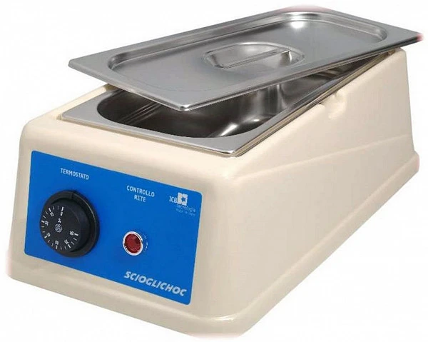 Устройство для плавления шоколада использует сухую систему подогрева дна и боков контейнеров, чтобы получить равномерное прогревание шоколада.
