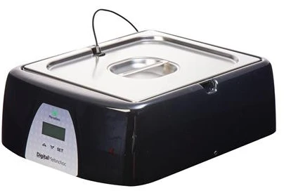 Данная модель использует сухой нагрев, регулировка температуры осуществляется с помощью электронного термостата - аппарат хорошо держит заданную температуру, что позволяет длительное время работать с оттемперированным шоколадом.