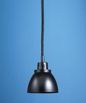 Принцип работы: передача ИК-излучения от лампы на поверхность продукта. S-образный подвес и плафон из полированной нержавеющей стали.