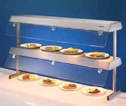 ИК-светильник двойной для полок для кратковременного поддержания в разогретом состоянии сервированных горячих блюд, готовой пиццы, любых других готовых горячих продуктов. Состоит из двух подогревателей длинной 1500 мм из хромоникелевой стали с встроенными ИК кварцевыми лампами.